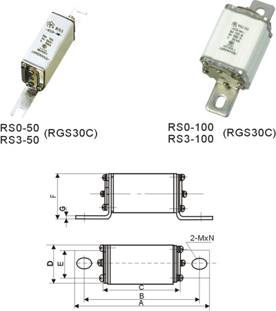 用途:NGT系列熔断器额定工作电压交流(50Hz)至1000V,额定发热电流至630A;额定发热电流至1000A;RS71-86型熔断器额定工作电压交流(50Hz)至1000V,均为半导体器件及其成套装置的短路保护。